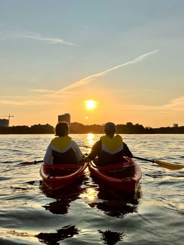For an unforgettable experience, join us for the only sunset kayak tour on the Ottawa River! Our 2.5-3-hour Ottawa Kayak Tours explore the beautiful river and some of Ottawa’s most picturesque, Instagram-worthy spots in the calm atmosphere of the evening. Designed for small groups of 4-8 participants, these tours include all necessary equipment and are perfect for beginners, intermediate, or skilled kayakers.